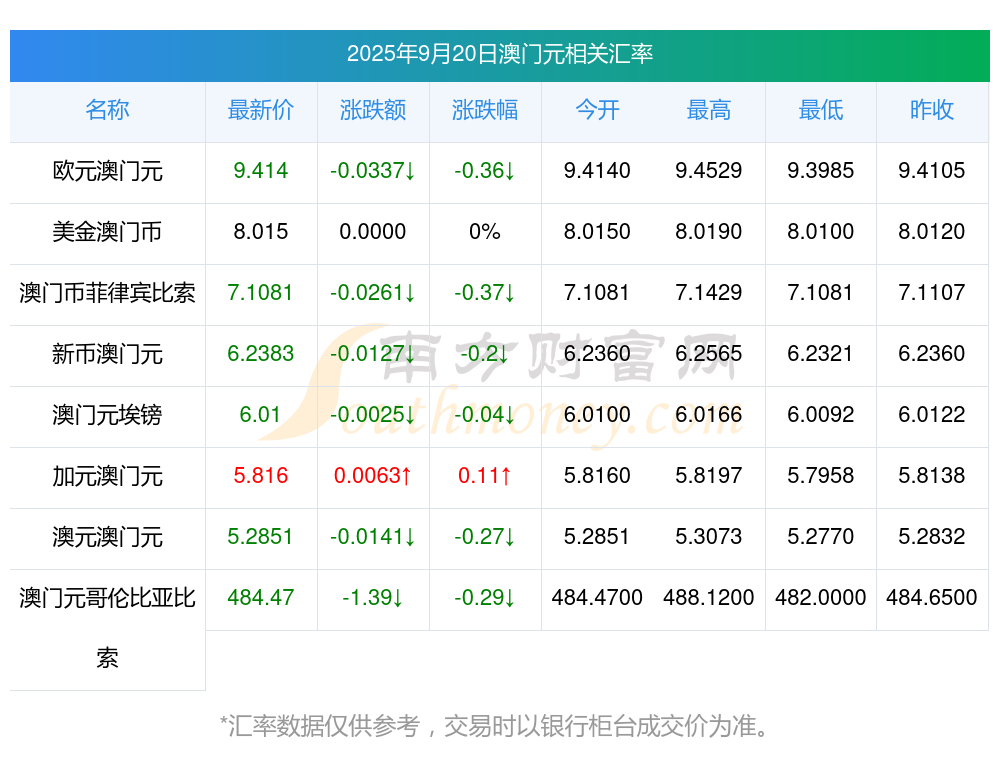 2025年9月20日澳門(mén)元相關(guān)匯率查詢(xún)