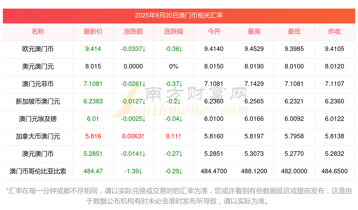 2025年9月20日澳門幣相關(guān)匯率查詢