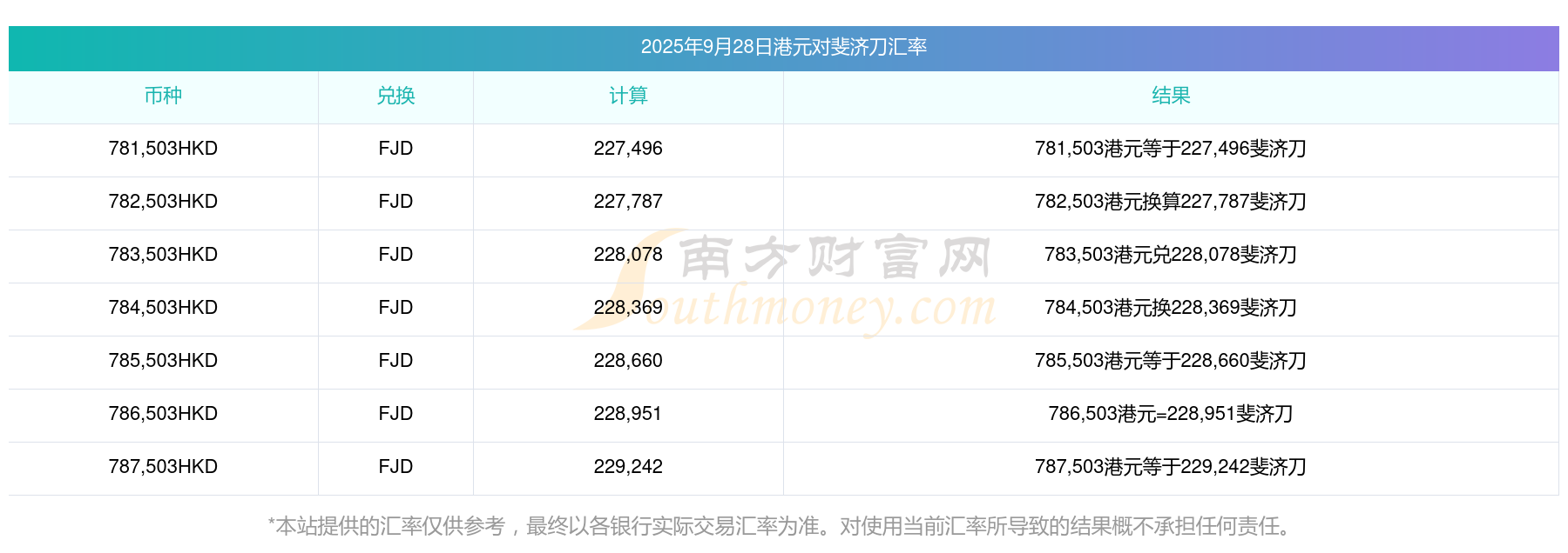 南方財(cái)富網(wǎng)為您提供港元對(duì)斐濟(jì)刀匯率最新價(jià)格詳情。
