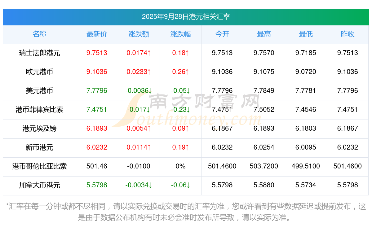 今天港元購匯查詢:今天港元對(duì)斐濟(jì)刀匯率是多少?2025/9/28