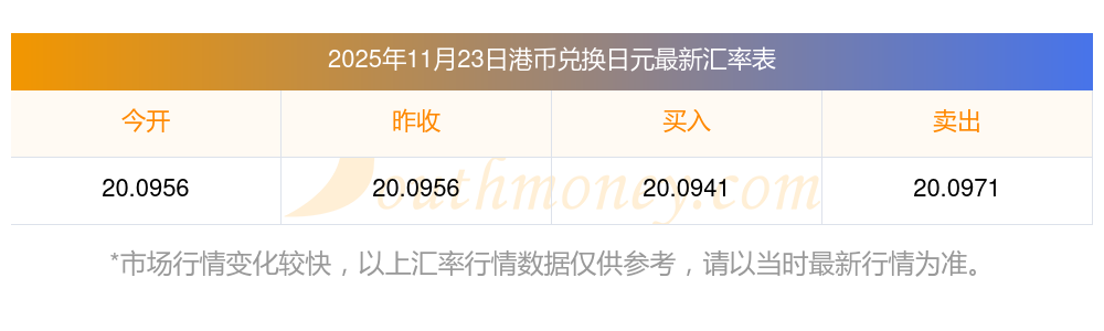 今天匯率調(diào)整 港幣與日元的匯率是多少?11月23日