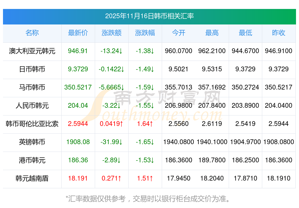 根據(jù)2025年11月16日匯率計算,KRW兌換IDR匯率最新價11.525000:今開價11.3880,昨收價11.5250,最高價11.5330,最低價11.3410。