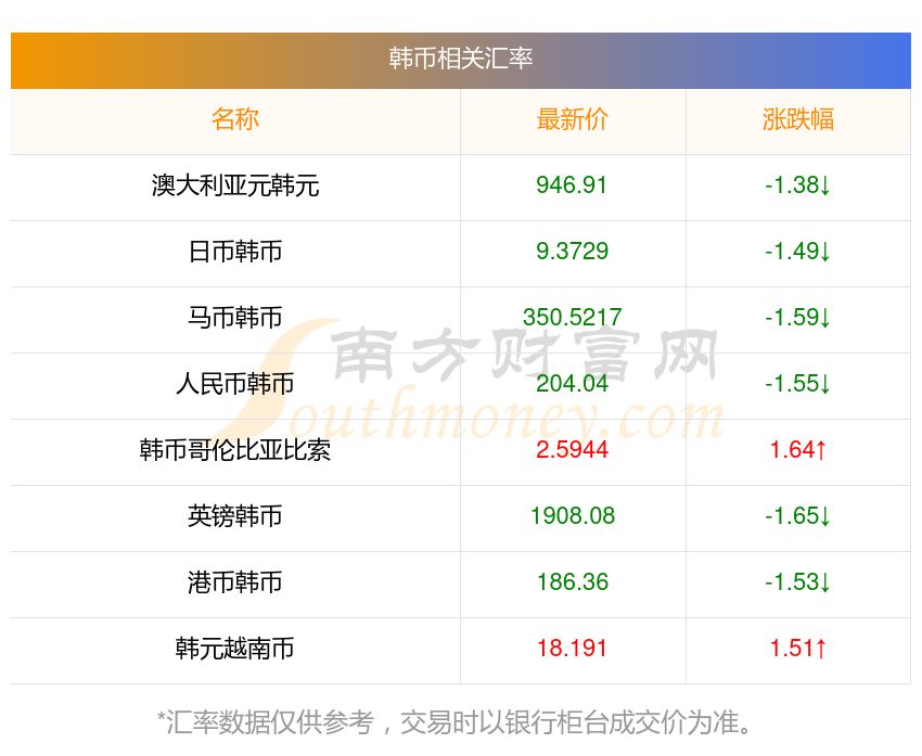 根據(jù)2025年11月16日匯率計(jì)算,KRW兌換NGN匯率最新價(jià)0.993988:今日開價(jià)0.9940,昨日收價(jià)0.9940,最高價(jià)0.9963,最低價(jià)0.9769。