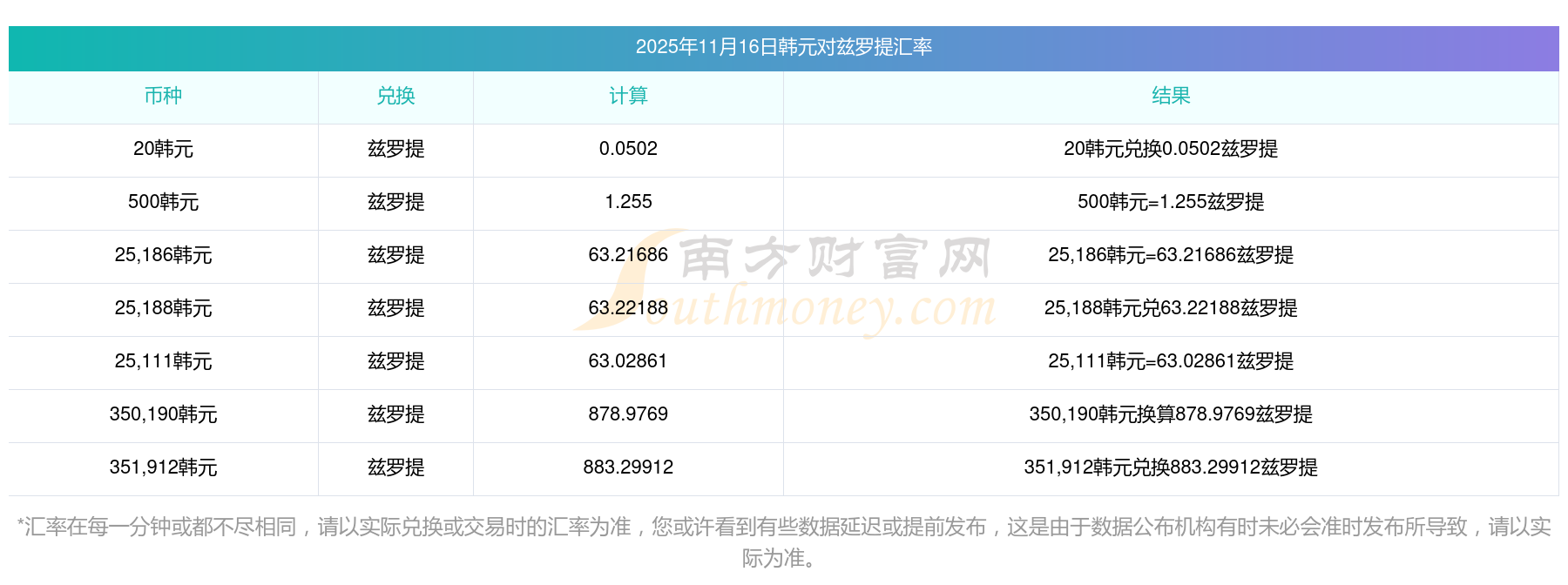 今天韓元兌換茲羅提匯率行情一覽2025-11-16
