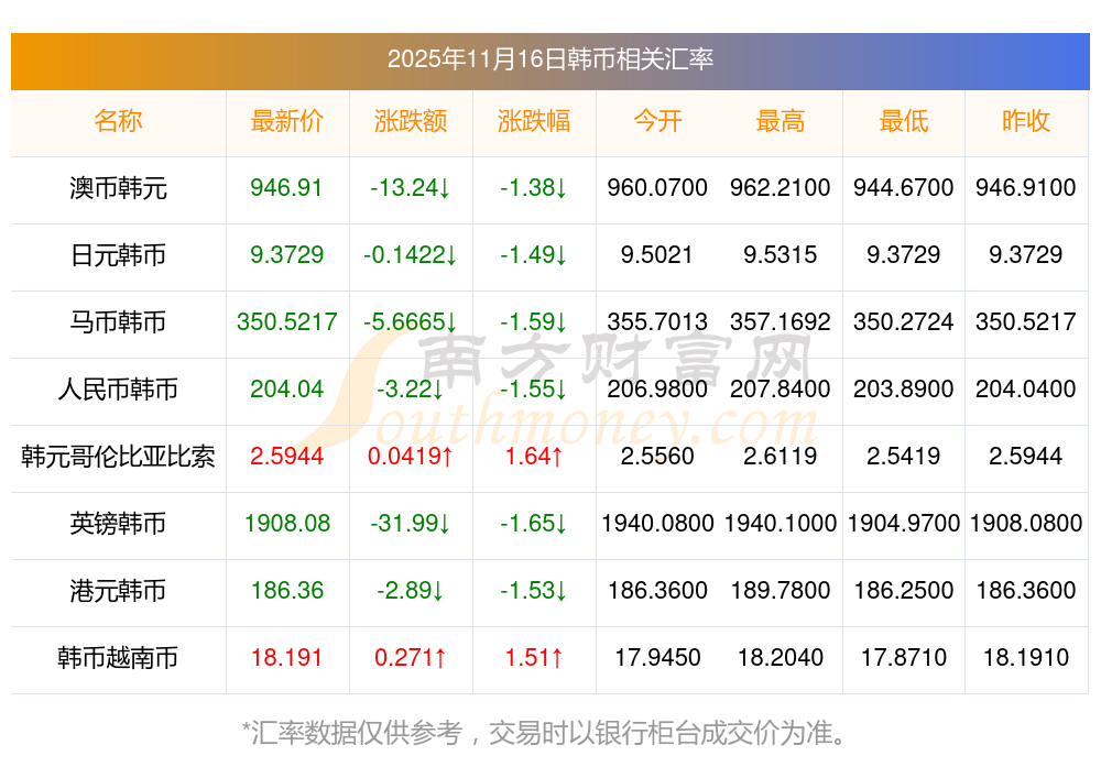 根據(jù)2025年11月16日匯率計(jì)算,韓幣兌換墨西哥比索匯率最新價(jià)0.012647,今開價(jià)0.0126,昨收價(jià)0.0126,最高價(jià)0.0127,最低價(jià)0.0124。