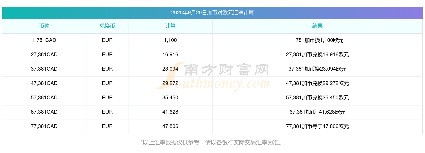 南方財富網(wǎng)為您提供加幣對歐元匯率最新價格詳情。