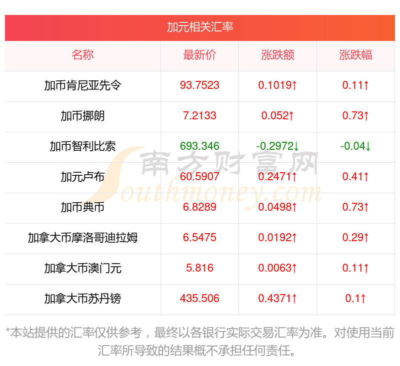 2025年9月20日加元相關(guān)匯率查詢