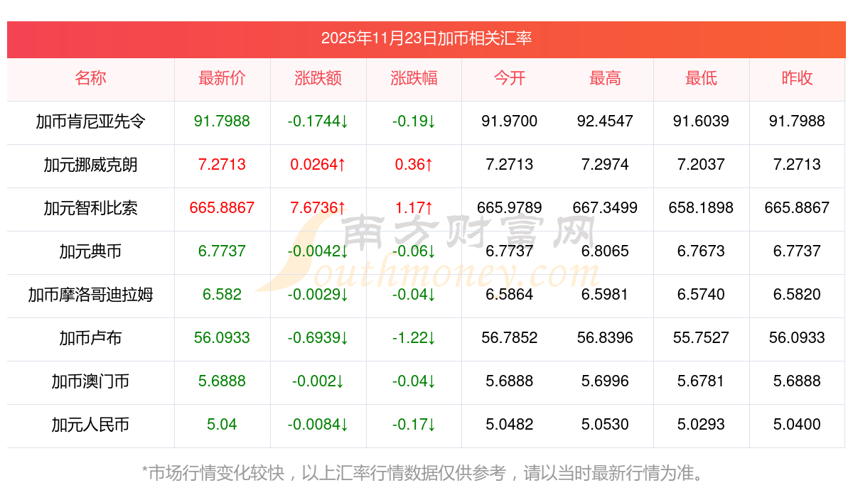2025年11月23日加幣相關(guān)匯率查詢