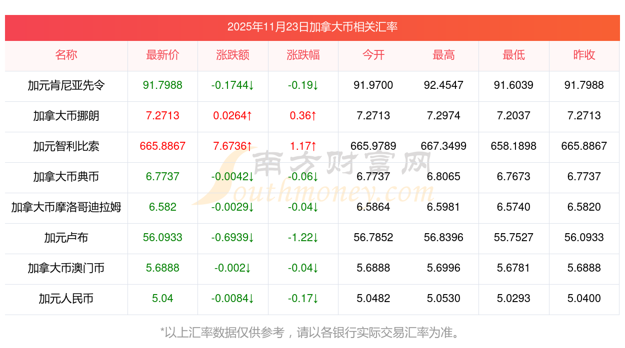 2025年11月23日加拿大幣相關(guān)匯率查詢(xún)