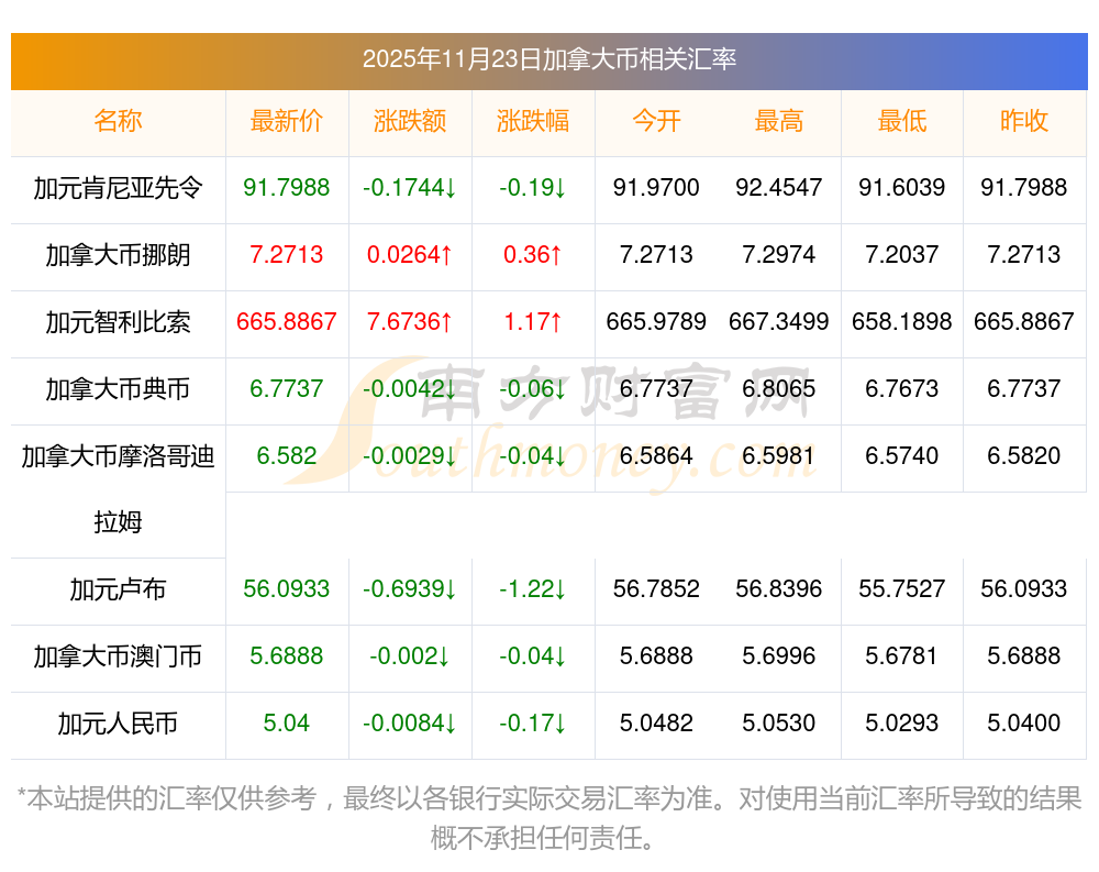 2025年11月23日加拿大幣相關(guān)匯率查詢(xún)