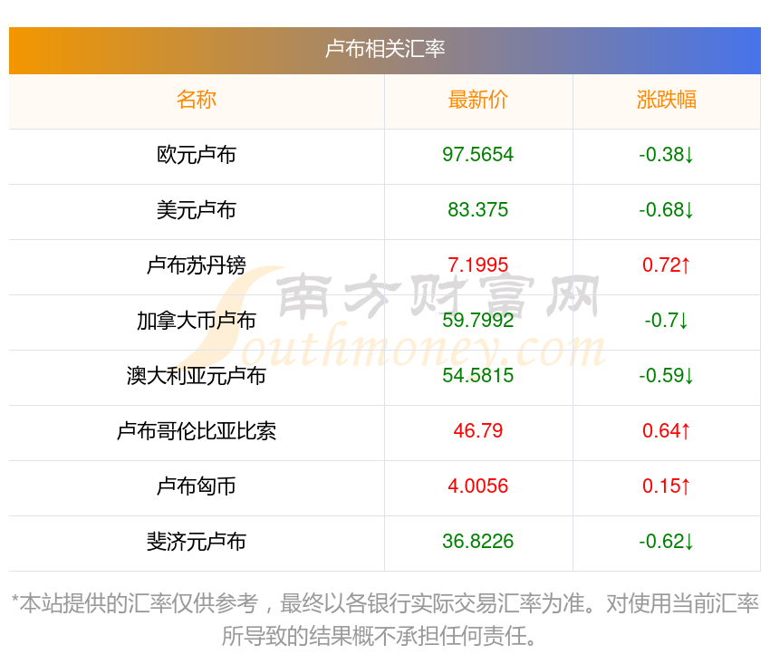 南方財(cái)富網(wǎng)為您提供盧布對埃及鎊匯率最新價格詳情。