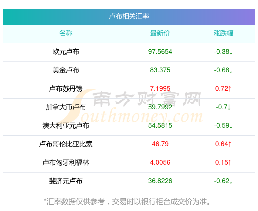 南方財富網(wǎng)為您提供盧布對尼日利亞奈拉匯率最新價格詳情。