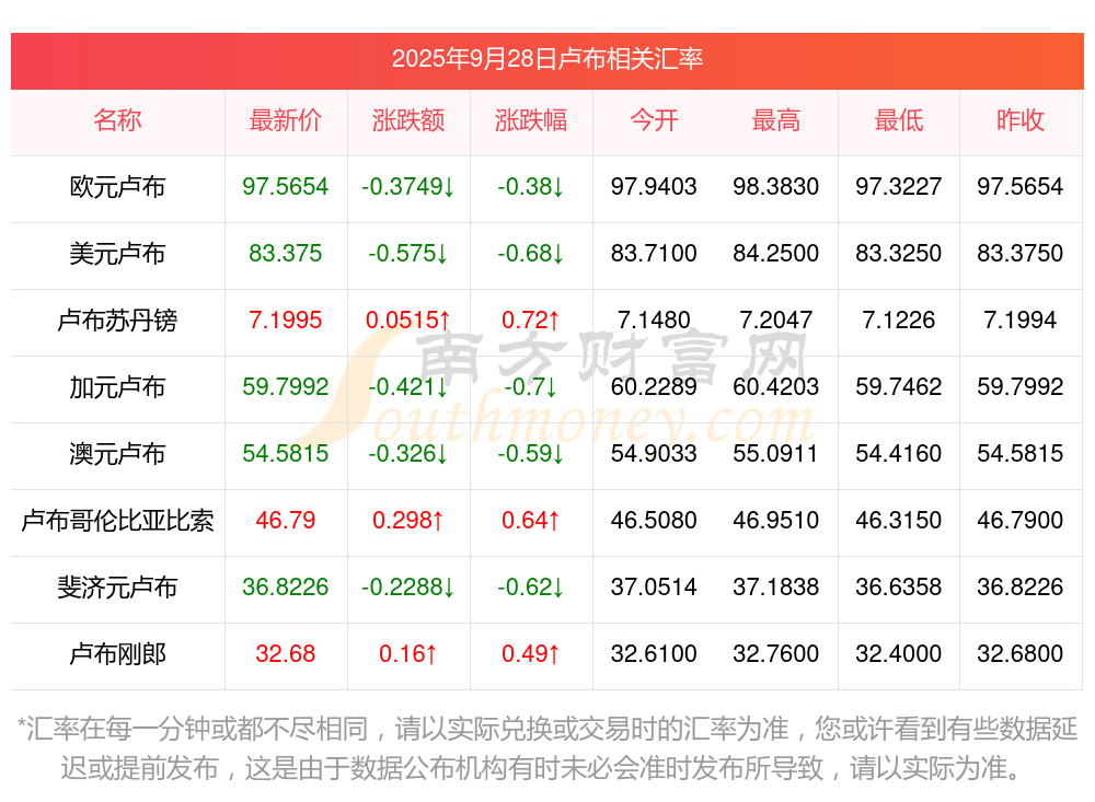 2025年9月28日盧布相關(guān)匯率查詢