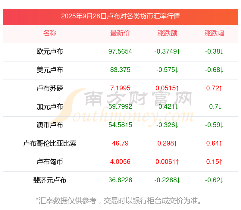 2025年9月28日盧布相關(guān)匯率查詢