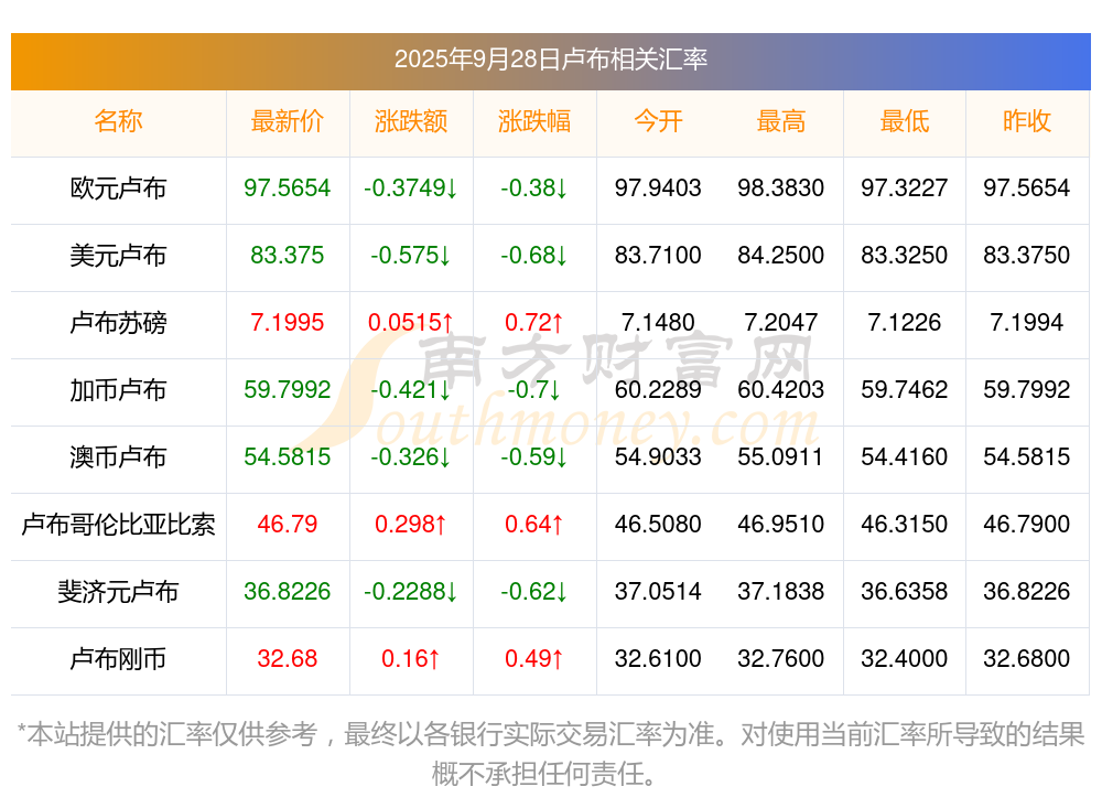 2025年9月28日盧布相關(guān)匯率查詢