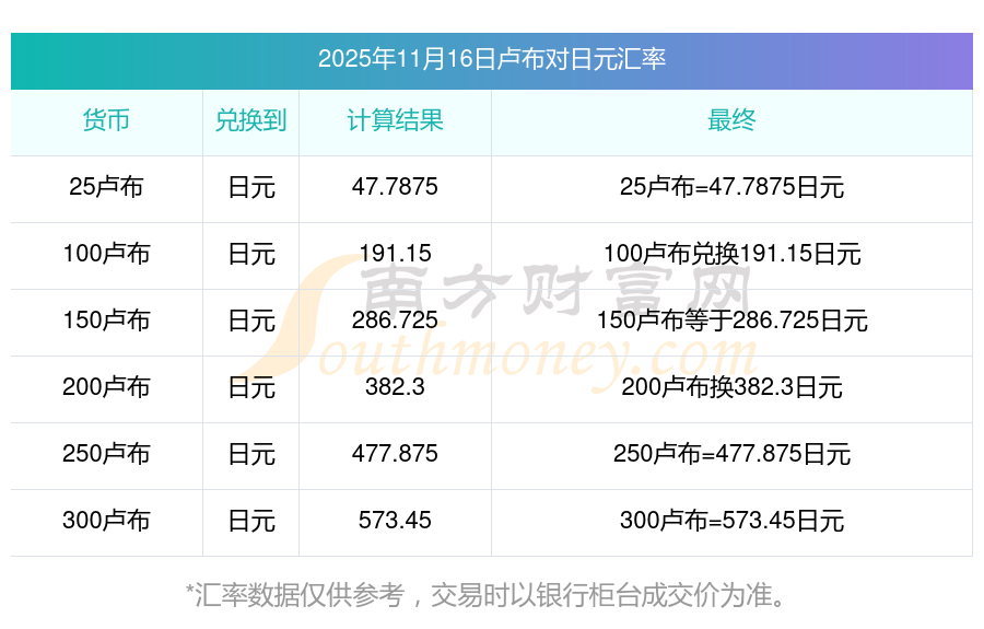 南方財(cái)富網(wǎng)為您提供盧布對(duì)日元匯率最新價(jià)格詳情。