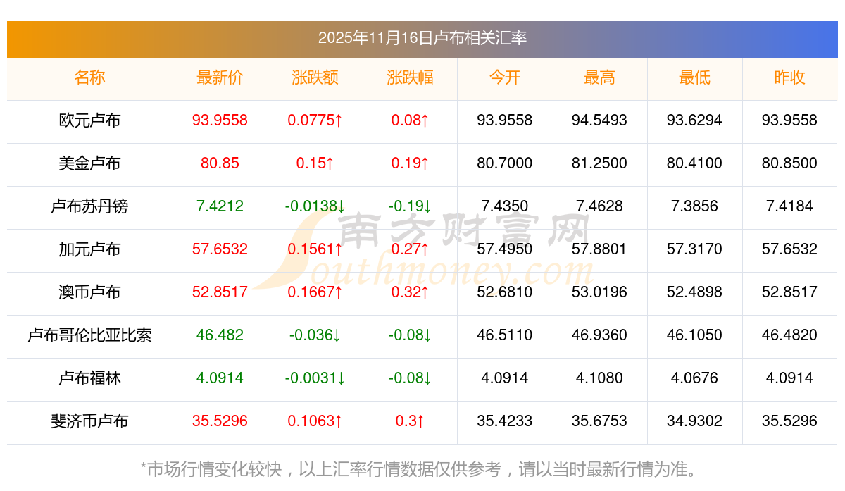 2025年11月16日盧布相關匯率查詢