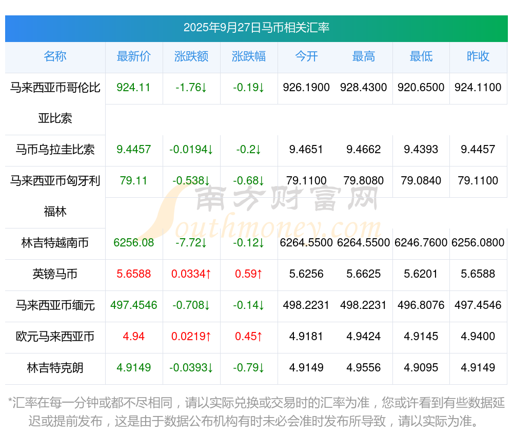 2025年9月27日馬幣相關(guān)匯率查詢