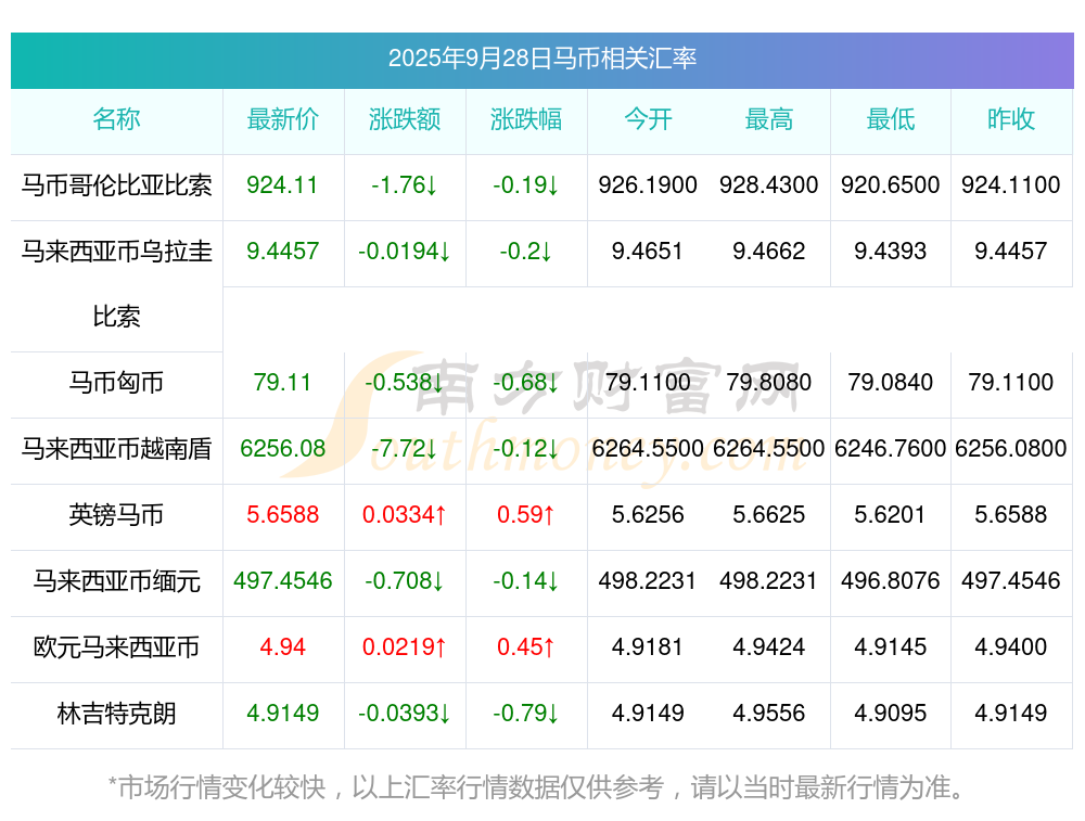 根據(jù)2025年9月28日匯率,馬幣兌換印尼盾匯率最新價(jià)3963.050000,今開(kāi)價(jià)3971.5400,昨收價(jià)3963.0500,最高價(jià)3979.3900,最低價(jià)3960.2600。