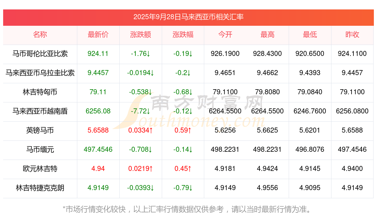 2025年9月28日馬來西亞幣相關(guān)匯率查詢