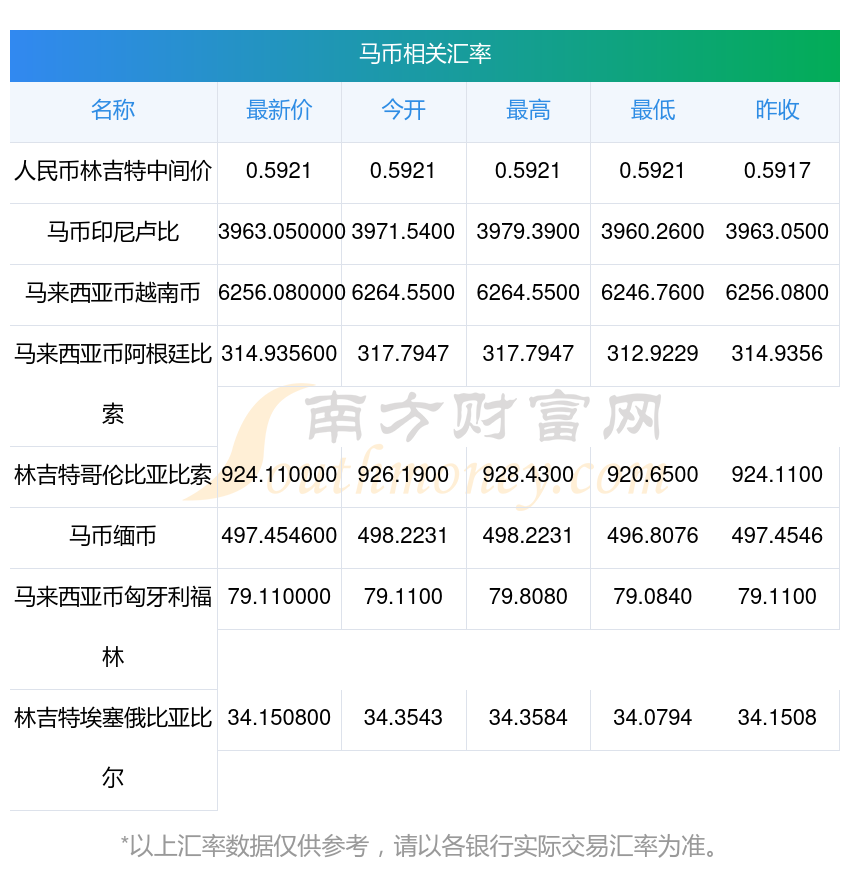 南方財(cái)富網(wǎng)為您提供馬幣對印尼盧比匯率最新價(jià)格詳情。