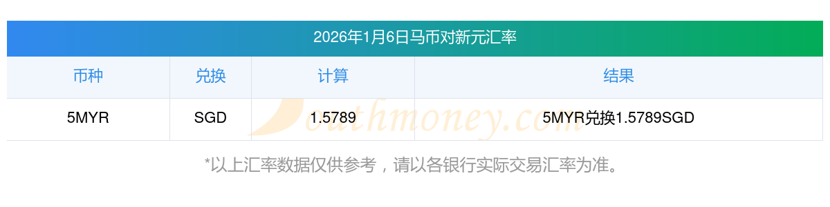 今日33馬幣兌換新元匯率查詢(xún)多少? 2026-01-06