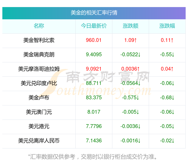 匯率數(shù)據(jù)僅供參考,交易時(shí)以銀行柜臺(tái)成交價(jià)為準(zhǔn)。