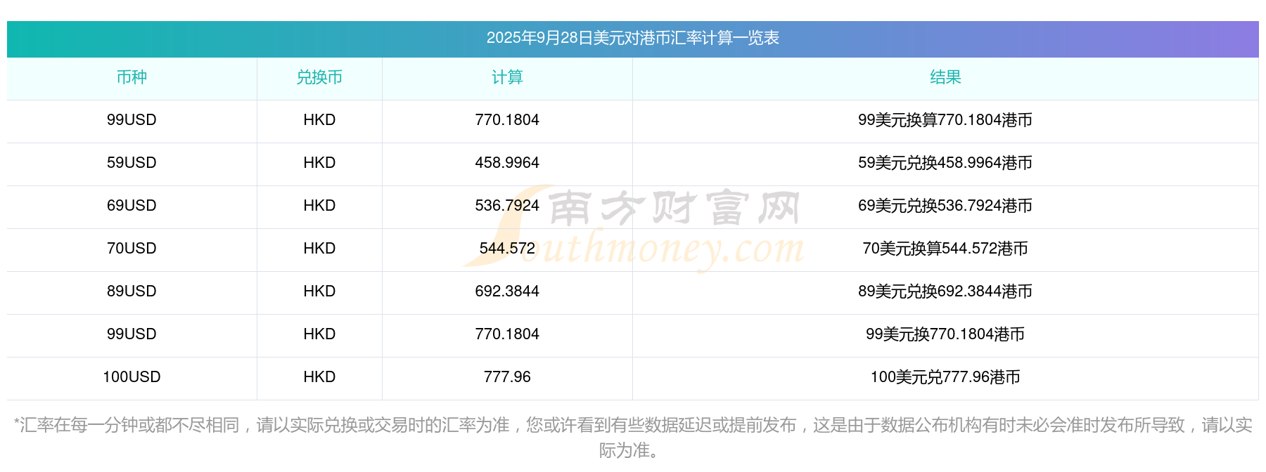 南方財富網(wǎng)為您提供美元對港幣匯率最新價格詳情。