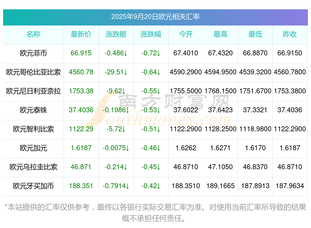 根據(jù)2025年9月20日匯率計算,EUR兌換RUB匯率最新價98.074900:今日開價98.1309,昨日收價98.0749,最高價98.8764,最低價97.6518。