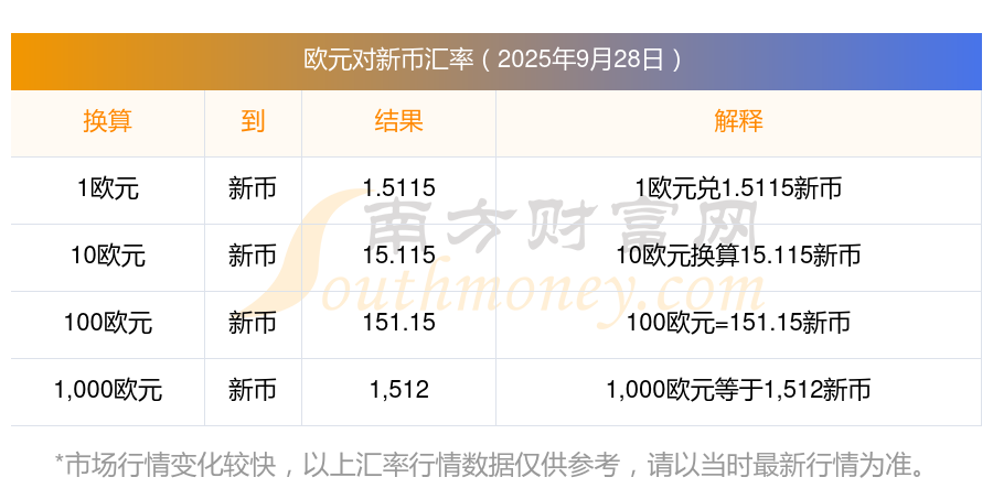 歐元今日匯率:歐元換算新幣匯率表09-28