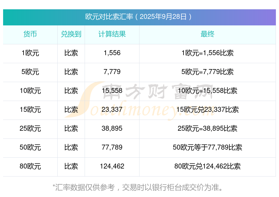 南方財(cái)富網(wǎng)為您提供歐元對(duì)比索匯率最新價(jià)格詳情。