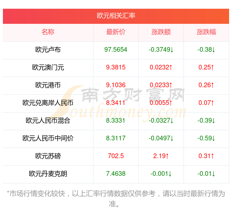 南方財(cái)富網(wǎng)為您提供歐元對(duì)摩洛哥迪拉姆匯率最新價(jià)格詳情。
