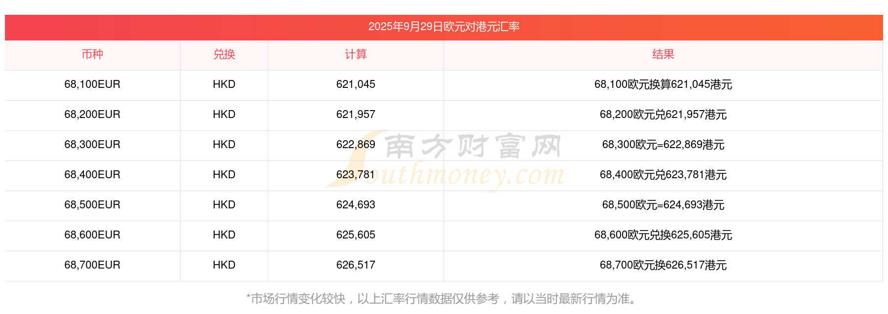 南方財富網(wǎng)為您提供歐元對港元匯率最新價格詳情。