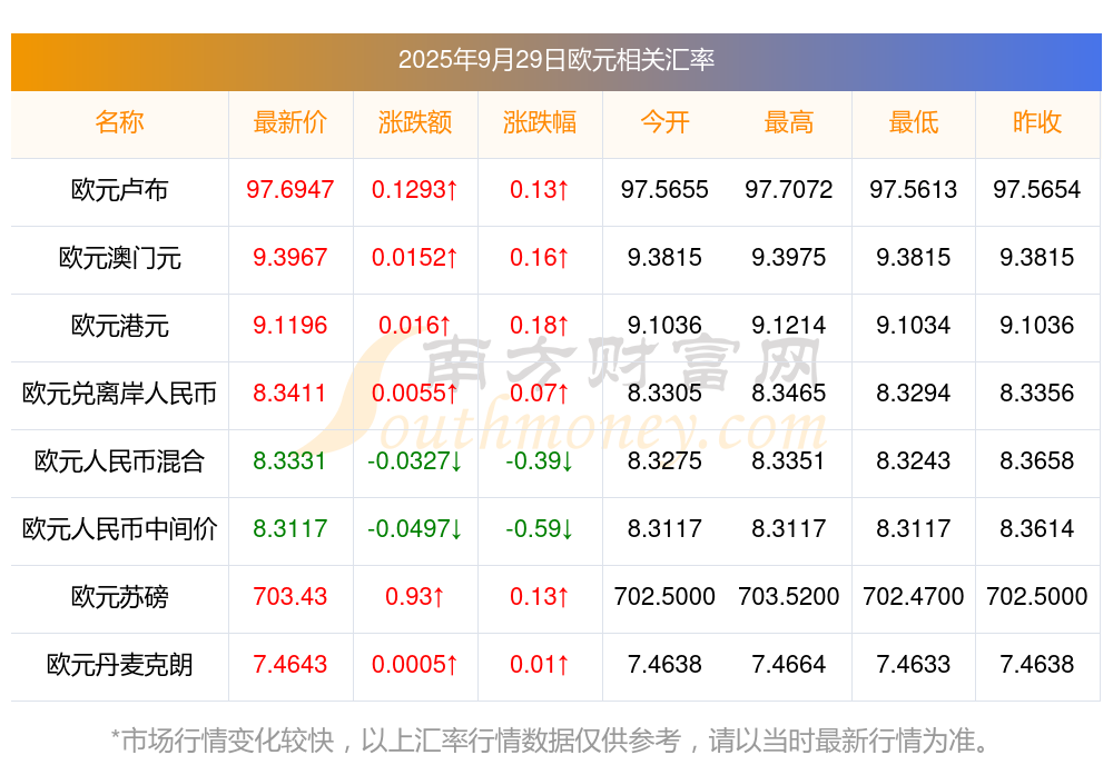 今日35歐元兌換港元匯率調(diào)整多少? 2025年9月29日