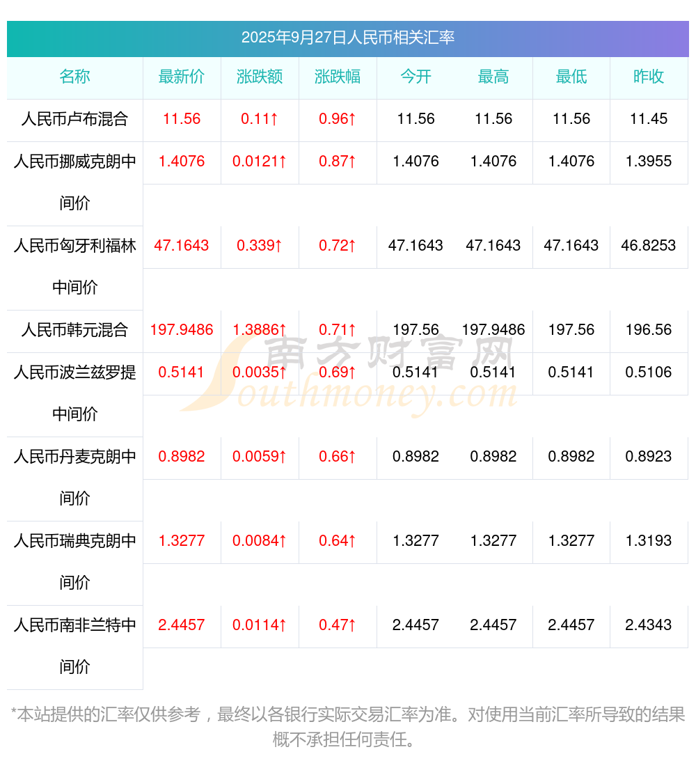 根據(jù)2025年9月27日匯率計算,CNY兌換NOK匯率最新價1.4076,今開價1.4076,昨收價1.3955,最高價1.4076,最低價1.4076。