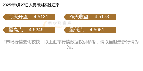 最新今天2025年9月27日人民幣兌換泰銖匯率