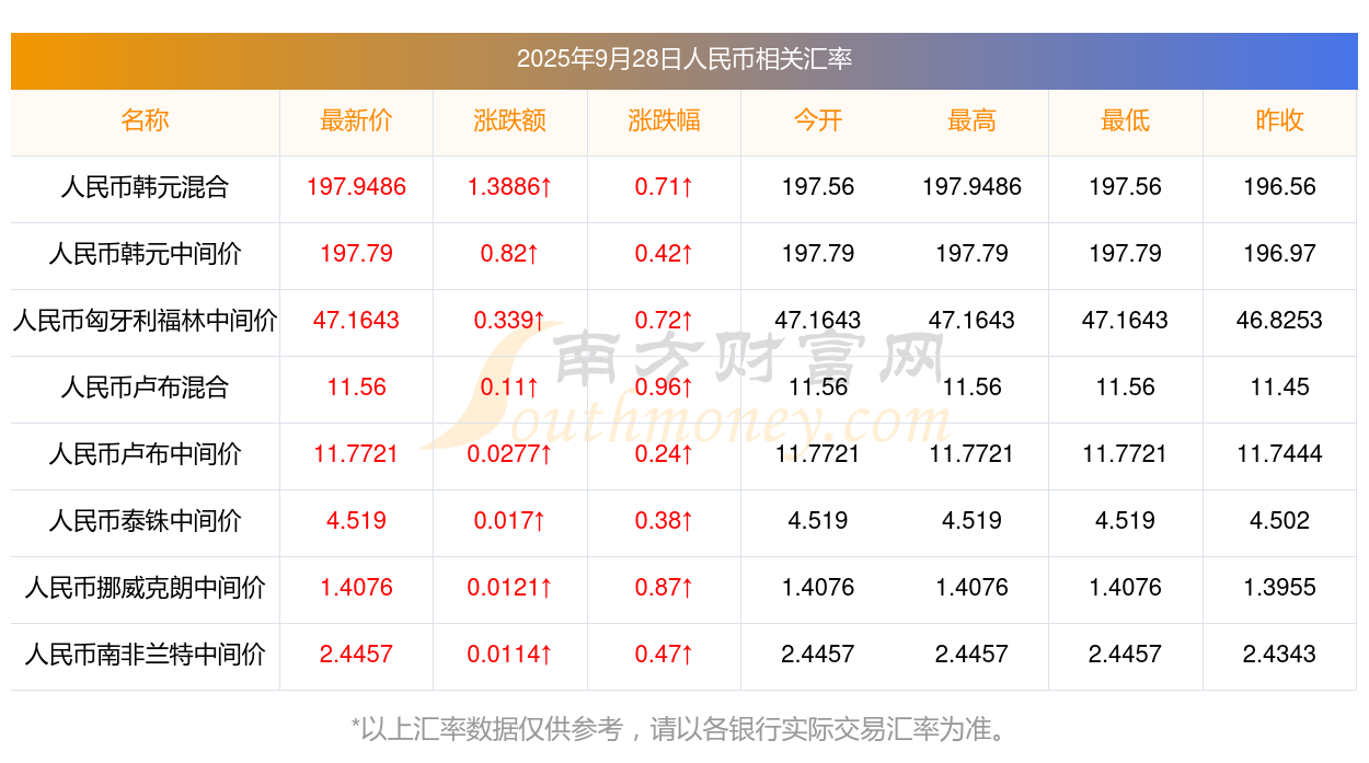 2025年9月28日人民幣相關(guān)匯率查詢(xún)