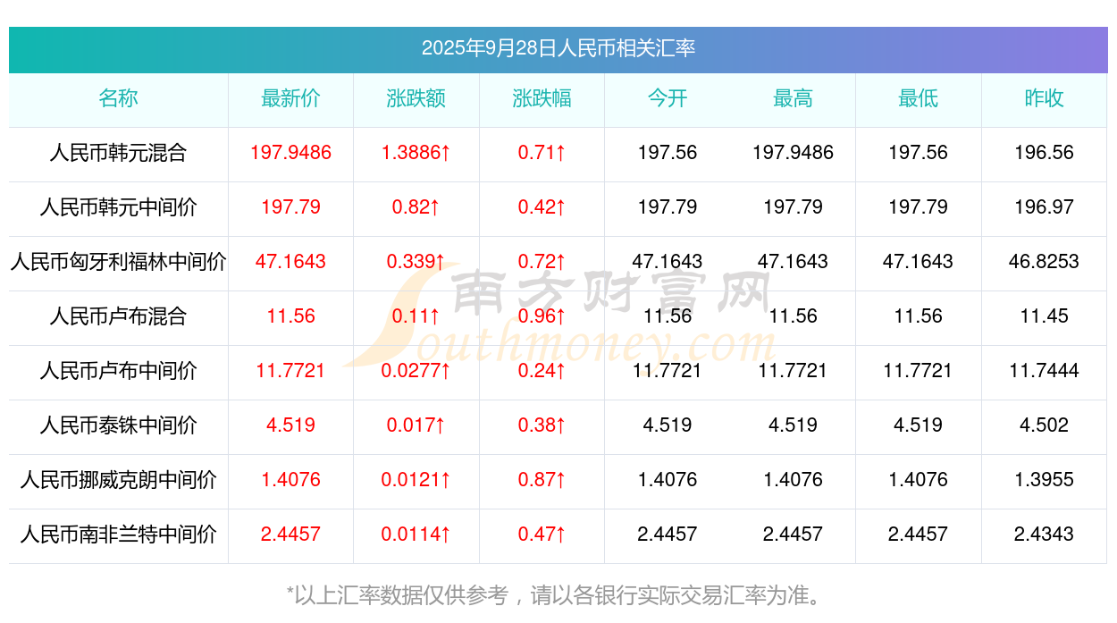 2025年9月28日人民幣相關(guān)匯率查詢