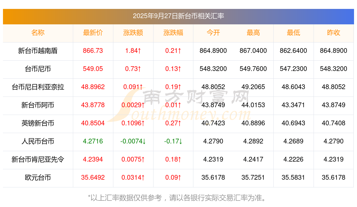 2025年9月27日新臺幣相關(guān)匯率查詢