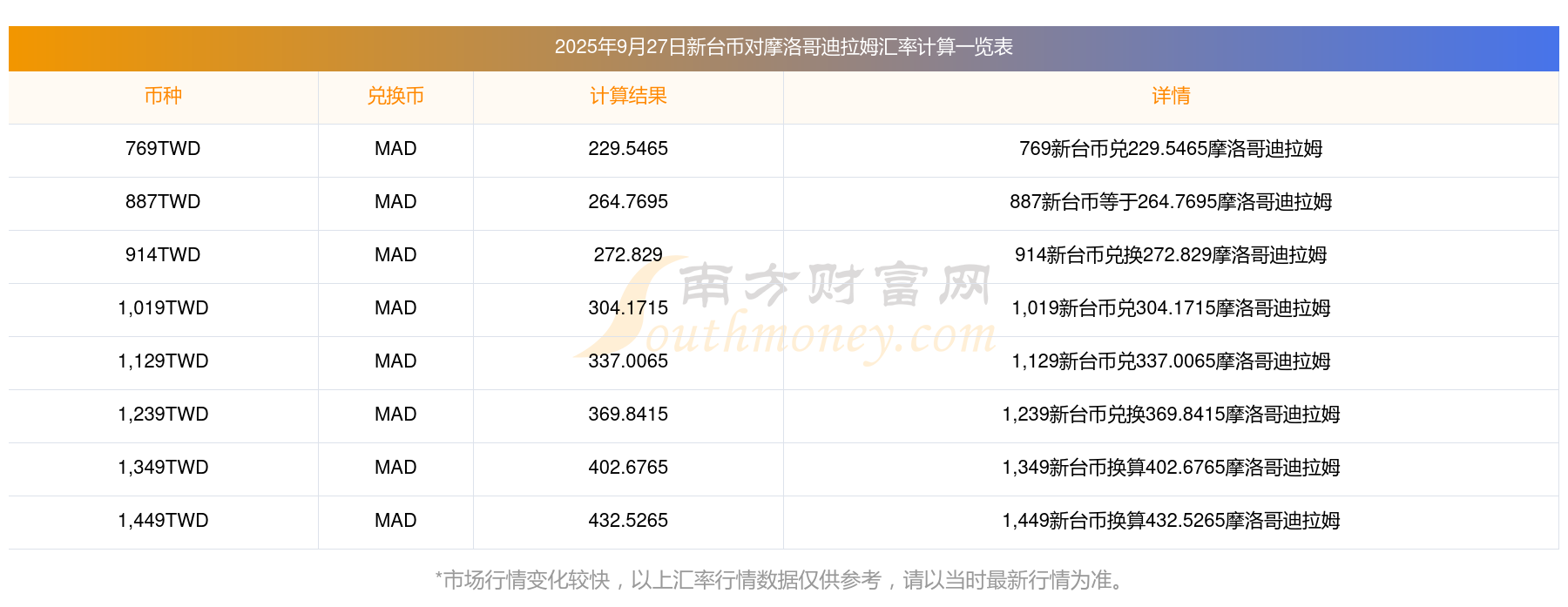 不同貨幣兌換比例_今天新臺(tái)幣兌換摩洛哥迪拉姆匯率行情表(2025/09/27)