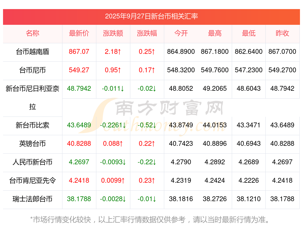2025年9月27日新臺幣相關(guān)匯率查詢