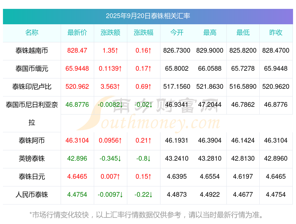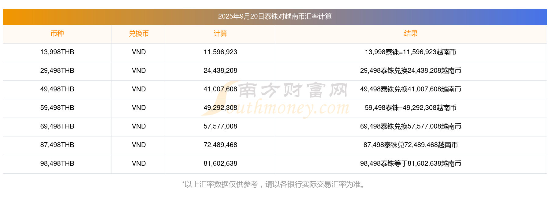 今日泰銖對越南幣匯率如何兌換的?09-20