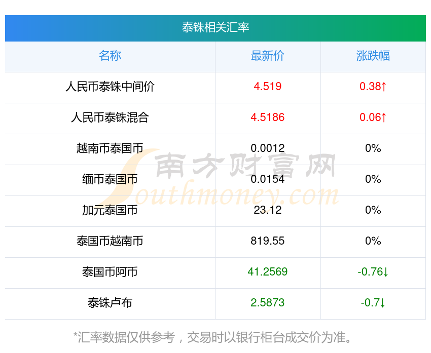 南方財(cái)富網(wǎng)為您提供泰銖對(duì)盧布匯率最新價(jià)格詳情。