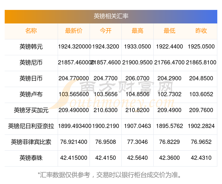 南方財(cái)富網(wǎng)為您提供英鎊對新臺幣匯率最新價(jià)格詳情。
