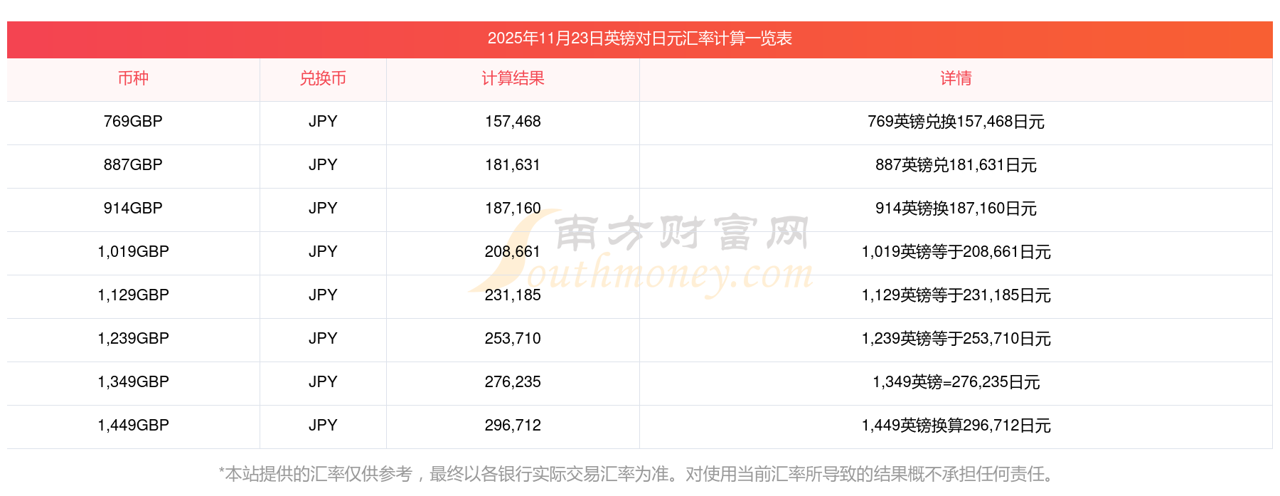 英鎊對日元開盤價?今天138英鎊兌日元匯率又是多少?2025/11/23