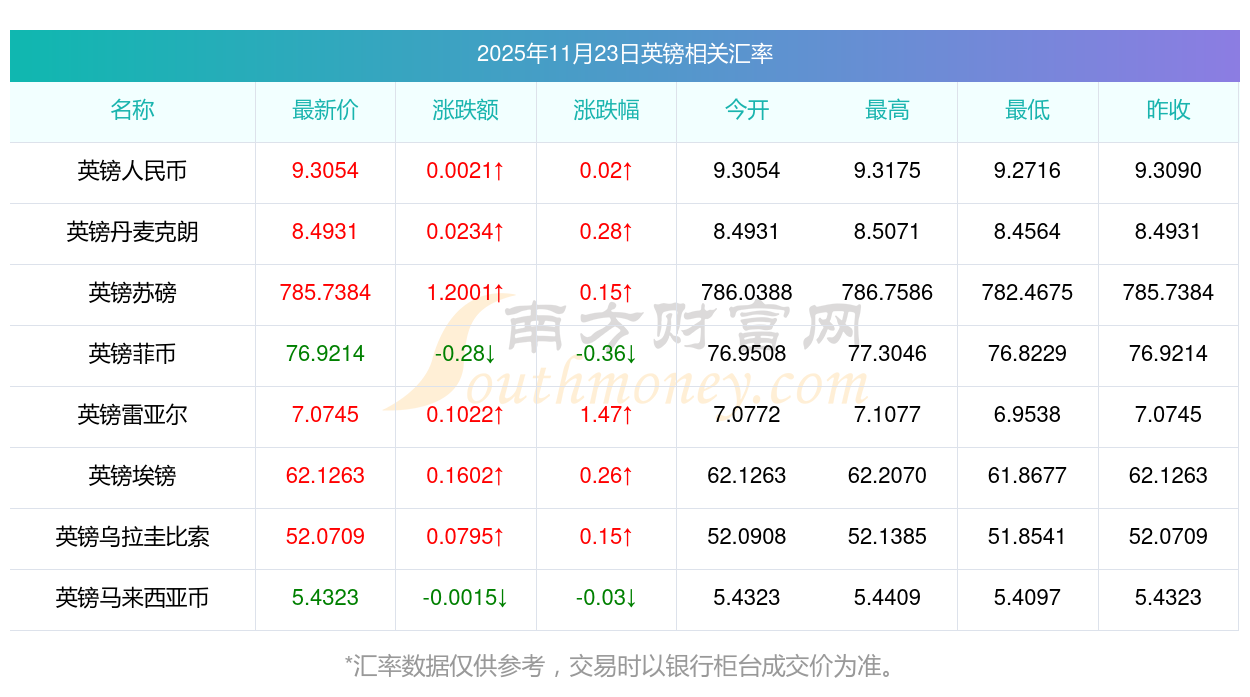 2025年11月23日英鎊相關(guān)匯率查詢