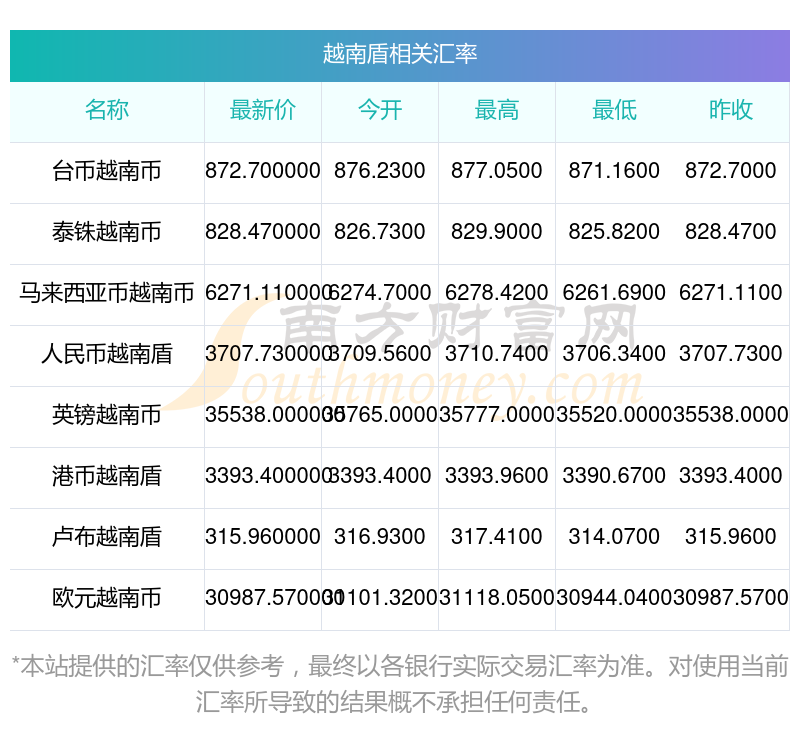 南方財(cái)富網(wǎng)為您提供越南盾對(duì)斐濟(jì)刀匯率最新價(jià)格詳情。
