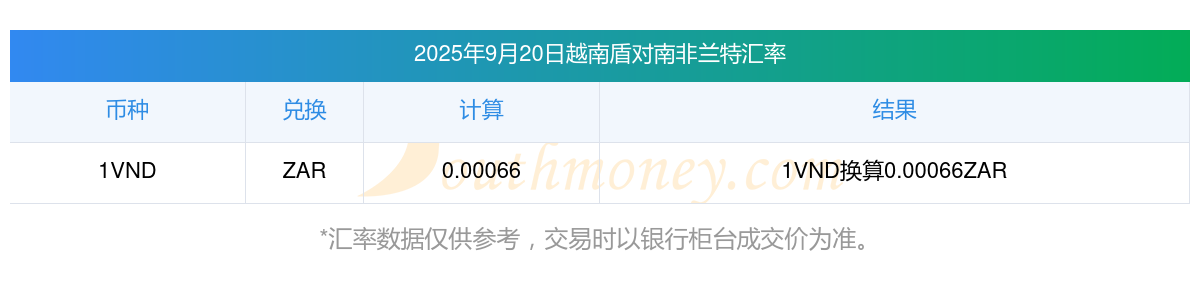 越南盾匯率調(diào)整嗎?2越南盾與南非蘭特匯率是多少2025/9/20