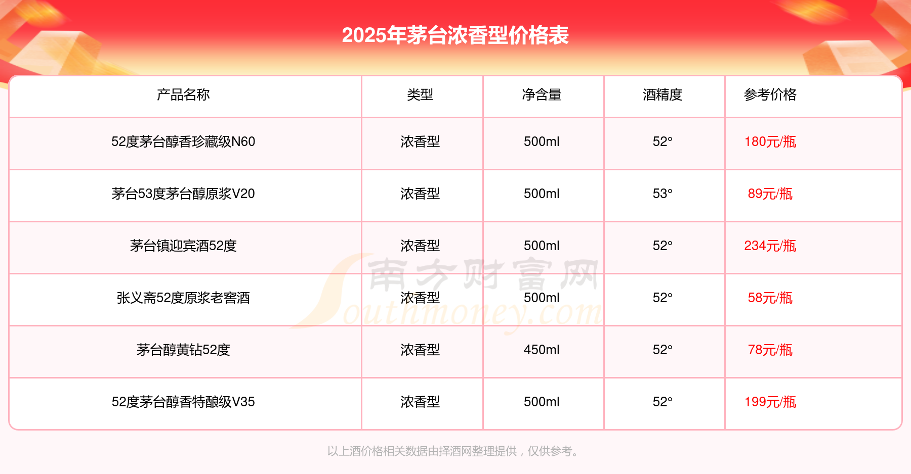 茅臺鎮(zhèn)迎賓酒52度參考價234元/瓶、52度茅臺醇香特釀級V35參考價199元/瓶、52度茅臺醇香珍藏級N60參考價180元/瓶。