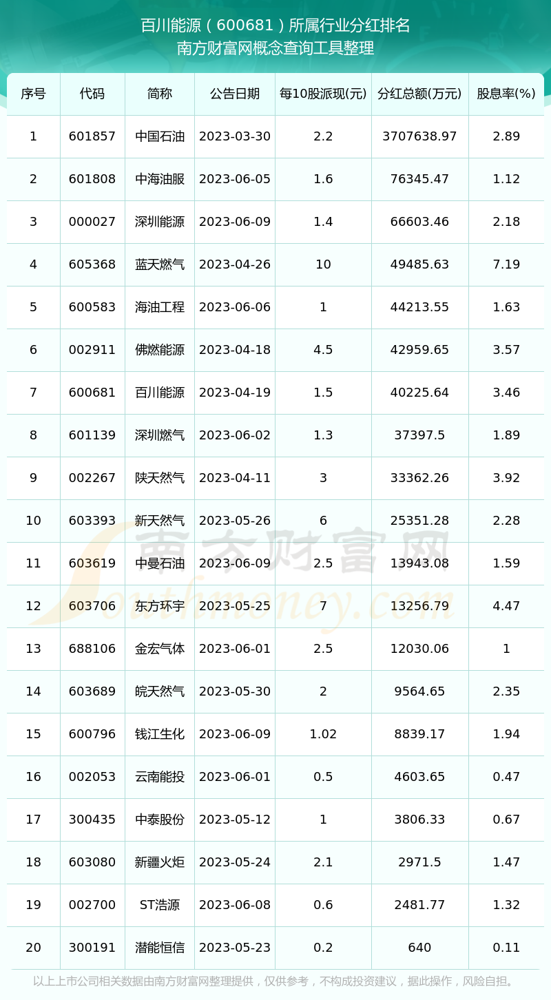 按照南方財(cái)富網(wǎng)趨勢(shì)選股系統(tǒng)統(tǒng)計(jì),百川能源所屬行業(yè)為天然氣行業(yè),天然氣行業(yè)分紅排名情況如下表: